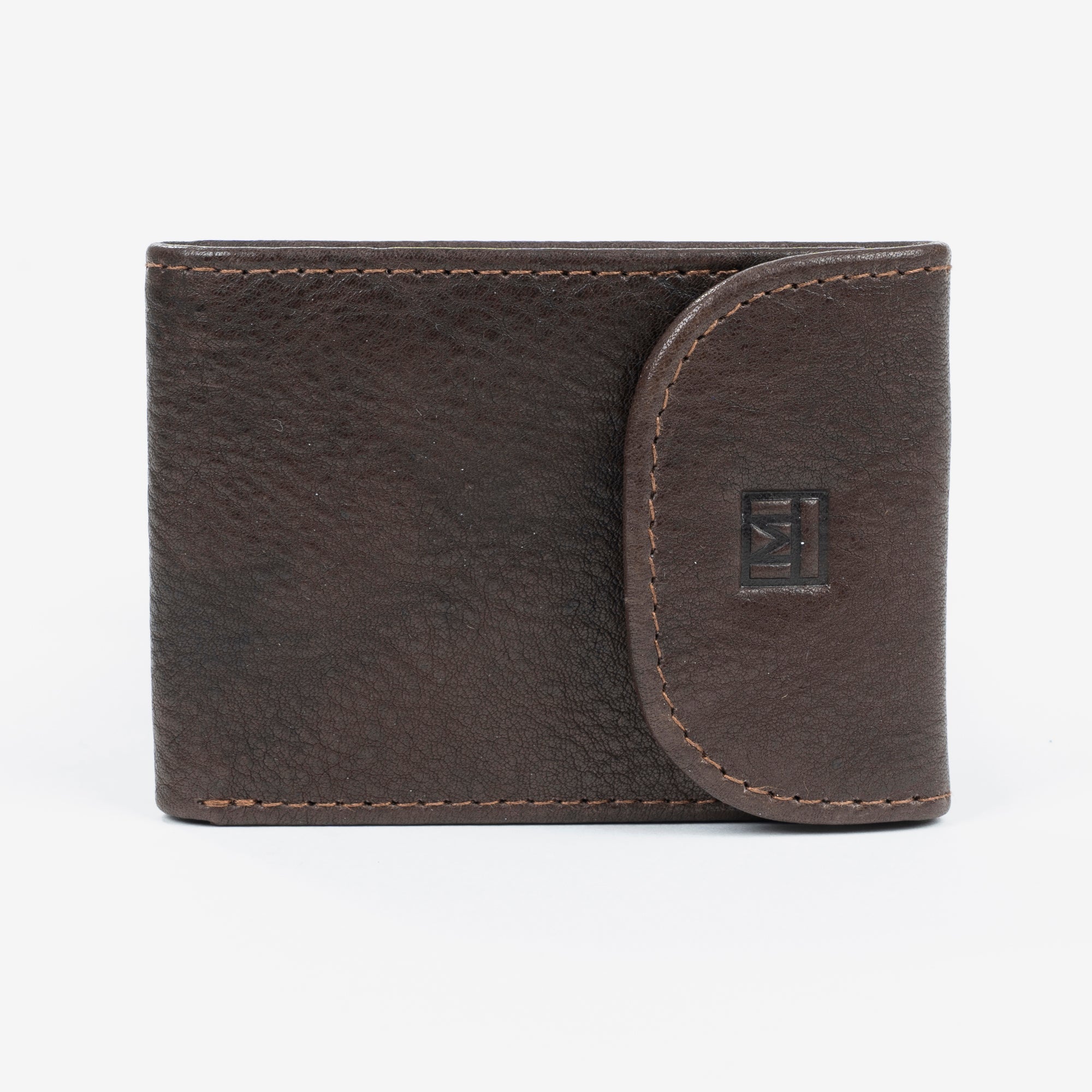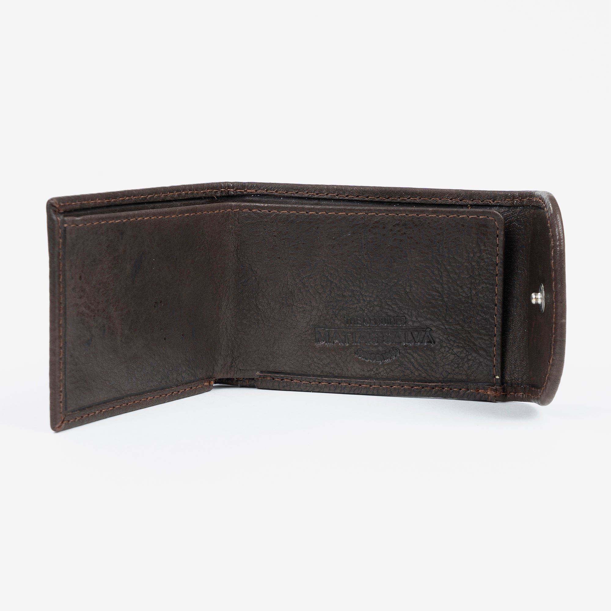 Billetero pequeño fabricado en piel natural cerrado con clic. El billetero viene envuelto en una encantadora cajita de cartón.