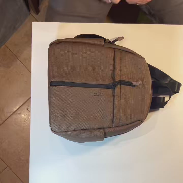 Go out light, hands-free, and with everything in its place. The Ember Backpack is designed for busy days: a canvas-effect look with a soft feel, clean on the outside and incredibly practical on the inside. The main compartment with a double zipper opens wide so you can see everything at a glance; the zippered back pocket keeps your valuables safe on the subway or while traveling; the vertical front pocket provides quick access, and the side pockets are perfect for a small bottle or sunglasses. Its medium size (26.5 x 31 x 11 cm) is compact, and it features adjustable shoulder straps and a top handle so you can carry it however your day demands. Made of high-quality faux leather with a durable finish and a lined interior , it pairs perfectly with jeans, a trench coat, or a dress. Organization, comfort, and a neutral tone that elevates your wardrobe essentials. Less weight on your mind, more life in your plans.