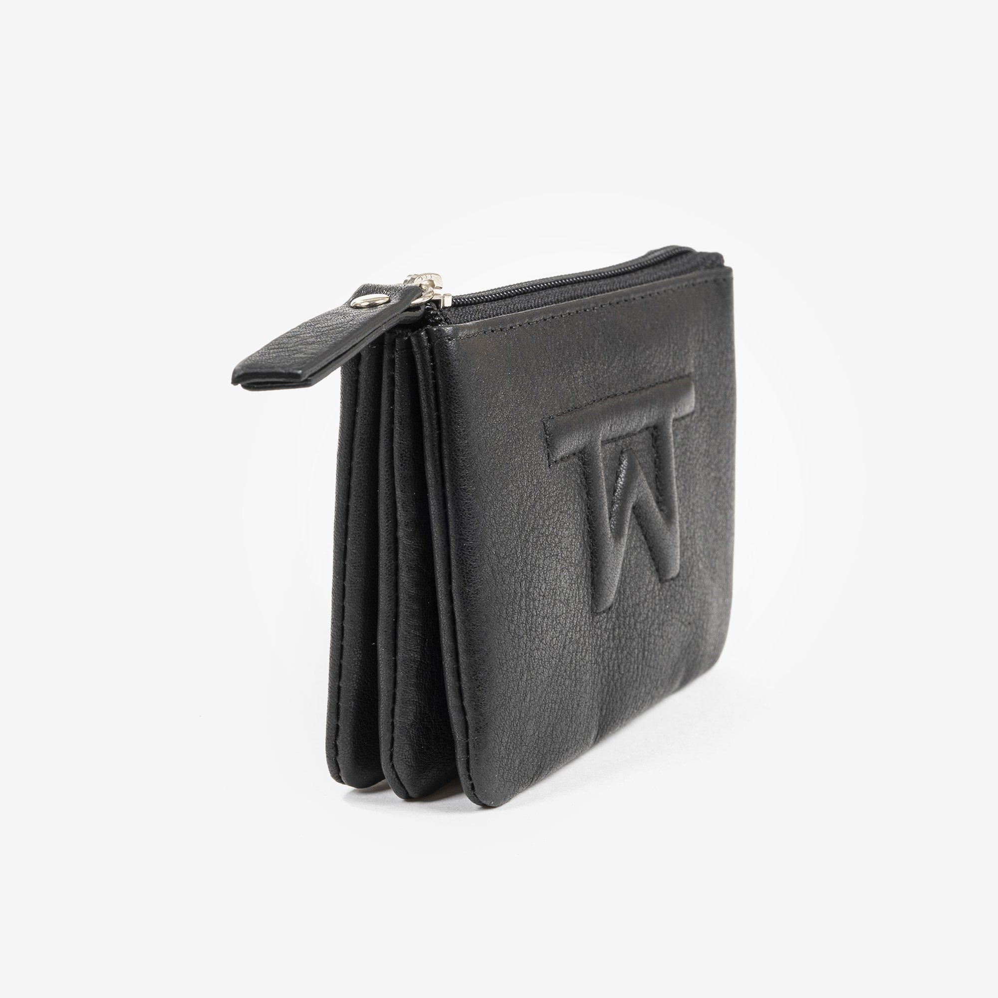 Monedero fabricado en piel natural, con cremallera de nylon.