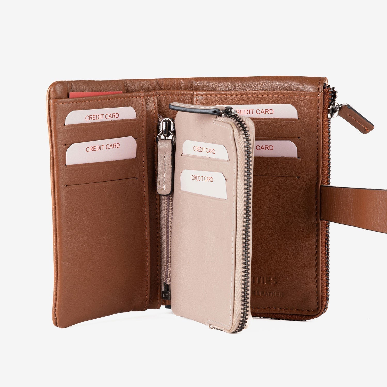 Billetero de piel para mujer, Serie line leather. 14.5x09 cm - Matties Bags