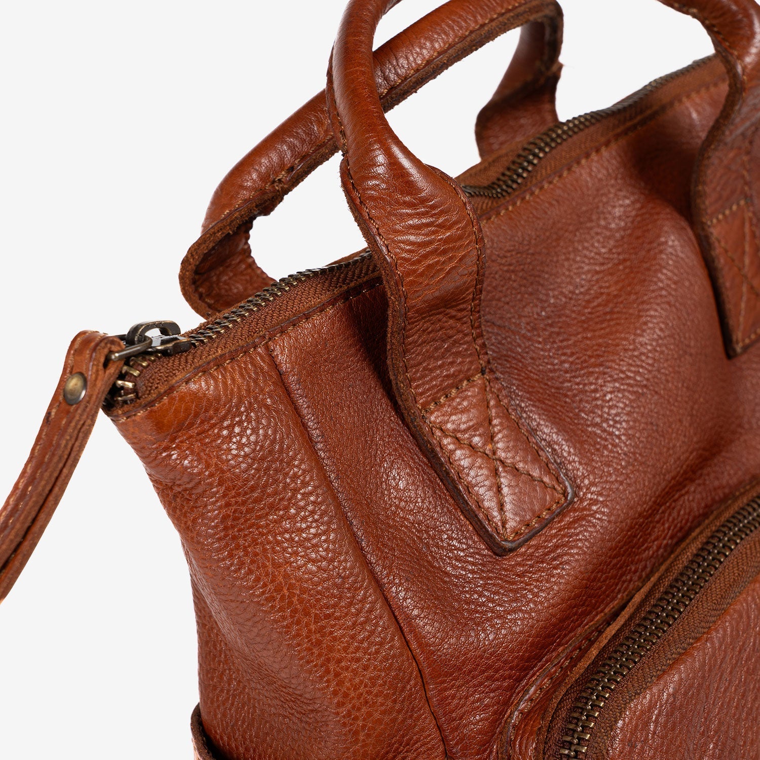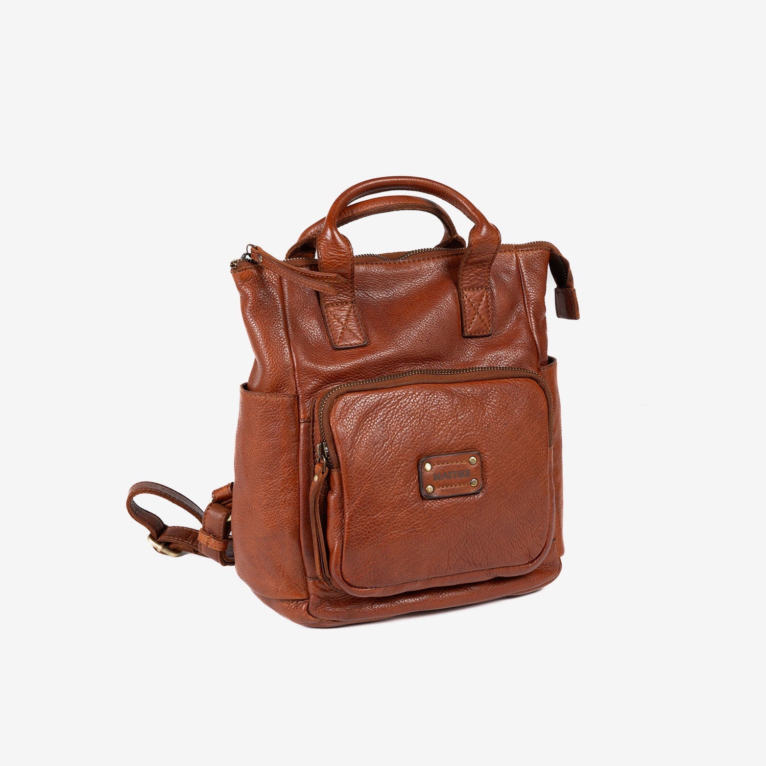 MOCHILA DE MUJER, COLOR CUERO, SERIE PIEL LAVADA. 25x27x11 cm - Matties Bags