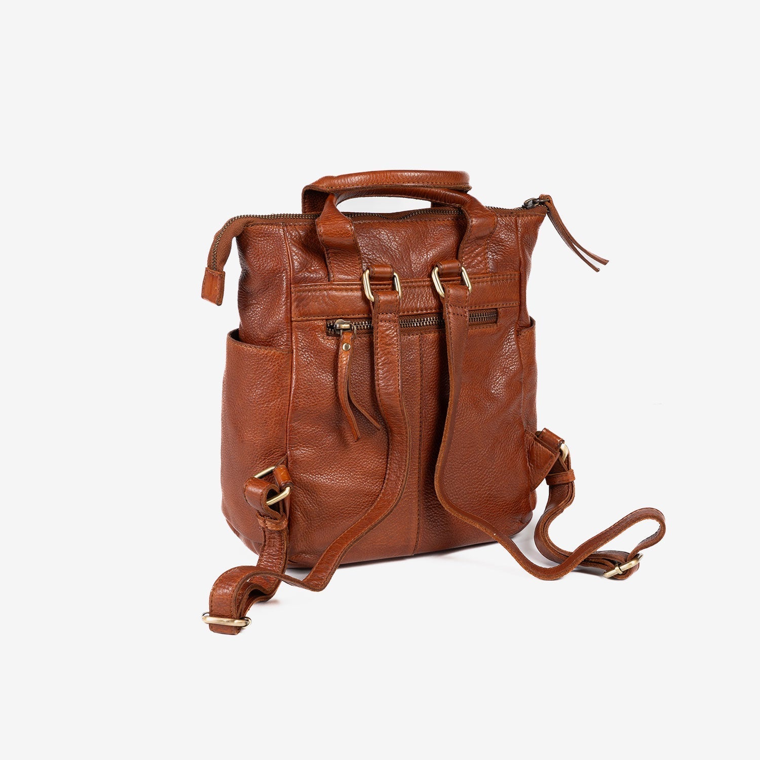 MOCHILA DE MUJER, COLOR CUERO, SERIE PIEL LAVADA. 25x27x11 cm