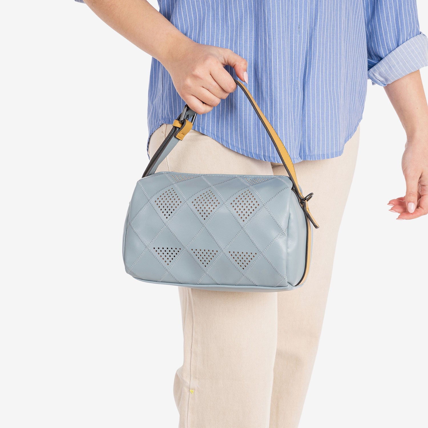 BOLSO DE MANO CON BANDOLERA, COLOR AZUL, SERIE ALHAMA. 22x13x11 CM - Matties Bags