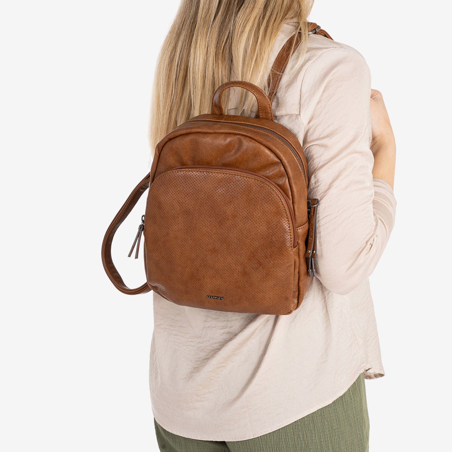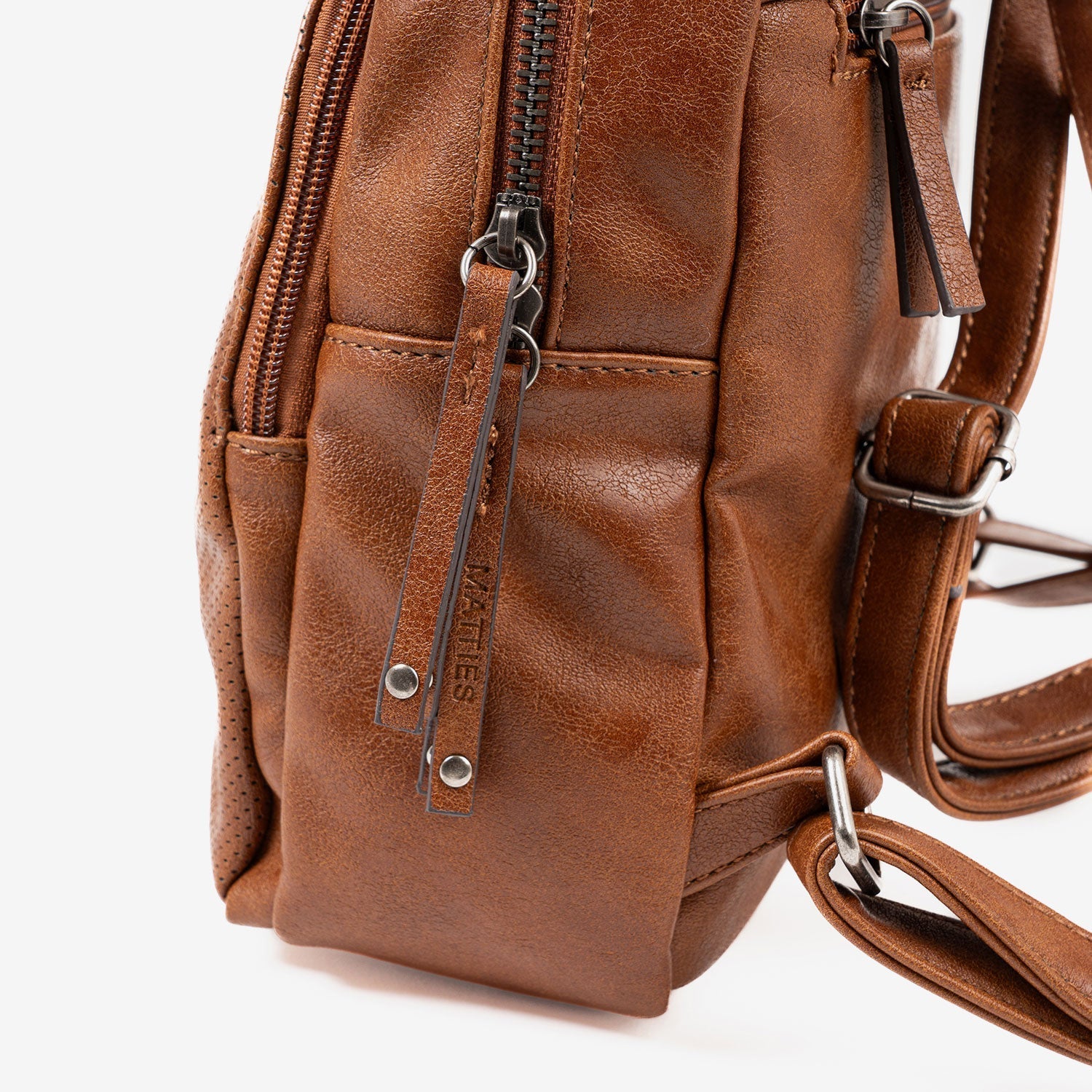 MOCHILA DE MUJER, COLOR CUERO, SERIE ALMERIA. 22x26x10 CM - Matties Bags