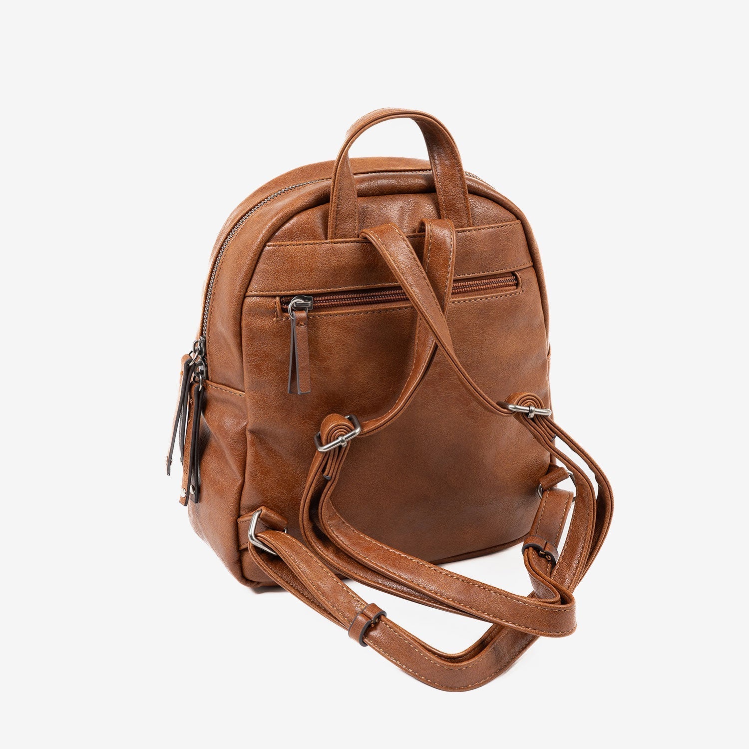 MOCHILA DE MUJER, COLOR CUERO, SERIE ALMERIA. 22x26x10 CM