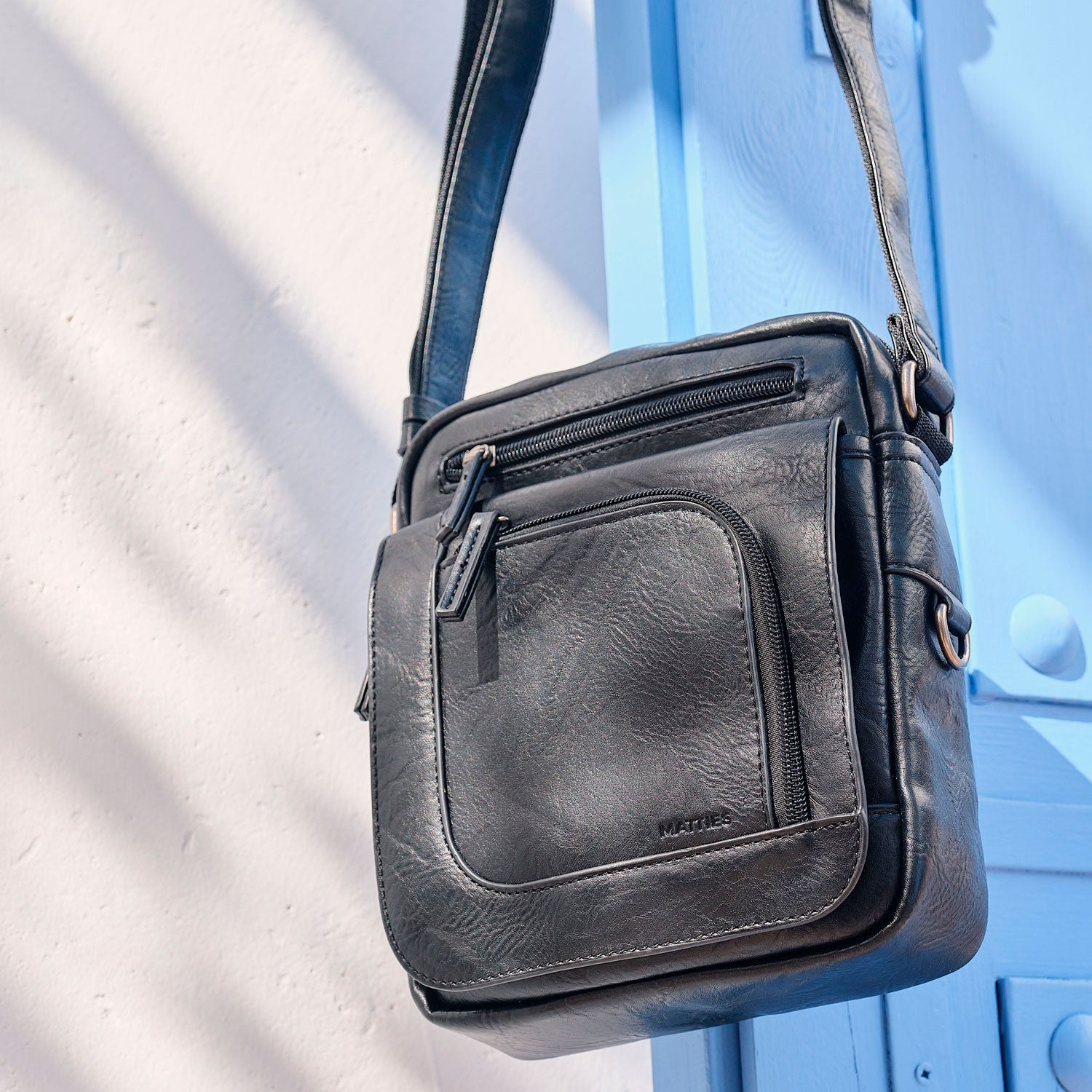 Ligera, segura y hecha para días con frenéticos. La Bandolera Experto Matties nace para quien quiere llevarlo todo organizado sin llenar los bolsillos: doble compartimento principal con cremallera, bolsillo frontal grande y superior horizontal para acceso rápido, más bolsillo trasero para lo valioso en metro o viaje. Su formato 19×23 cm admite tablet pequeña/ebook, cartera y gafas sin abultar; la correa regulable (cómoda y resistente) se adapta a tu altura. Fabricada en polipiel de alta calidad con textura tipo piel, forro textil y herrajes metálicos, aguanta el trote diario con un estilo sobrio que combina con todo. Diseño pensado en España para simplificarte el día: orden, discreción y tranquilidad en una sola pieza. Póntela y sigue a lo tuyo.