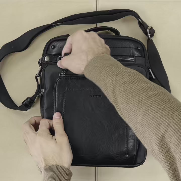 Salir ligero y con todo bajo control. La Bandolera Clásica XL está pensada para días largos en los que necesitas espacio sin perder comodidad: doble cuerpo con cremallera que separa documentos y cartera, bolsillo frontal de acceso rápido y bolsillo trasero para lo valioso cuando vas en metro o viajas. Su tamaño grande (24×30 cm) admite tablet de 10", agenda y gafas sin abultar; el interior forrado mantiene cada cosa en su sitio. La correa regulable se adapta a tu altura y la asa de mano te da una alternativa rápida al entrar y salir de reuniones. Fabricada en polipiel de alta calidad con acabado fiel a la piel, sobria y resistente para el trote diario. Orden, seguridad y un estilo discreto que siempre encaja. Póntela y sigue a lo tuyo.