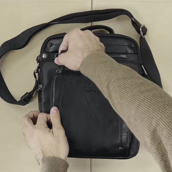 Es una bandolera grande, para aquellos hombres que la utilizan para trabajar o les gusta llevar muchas cosas.