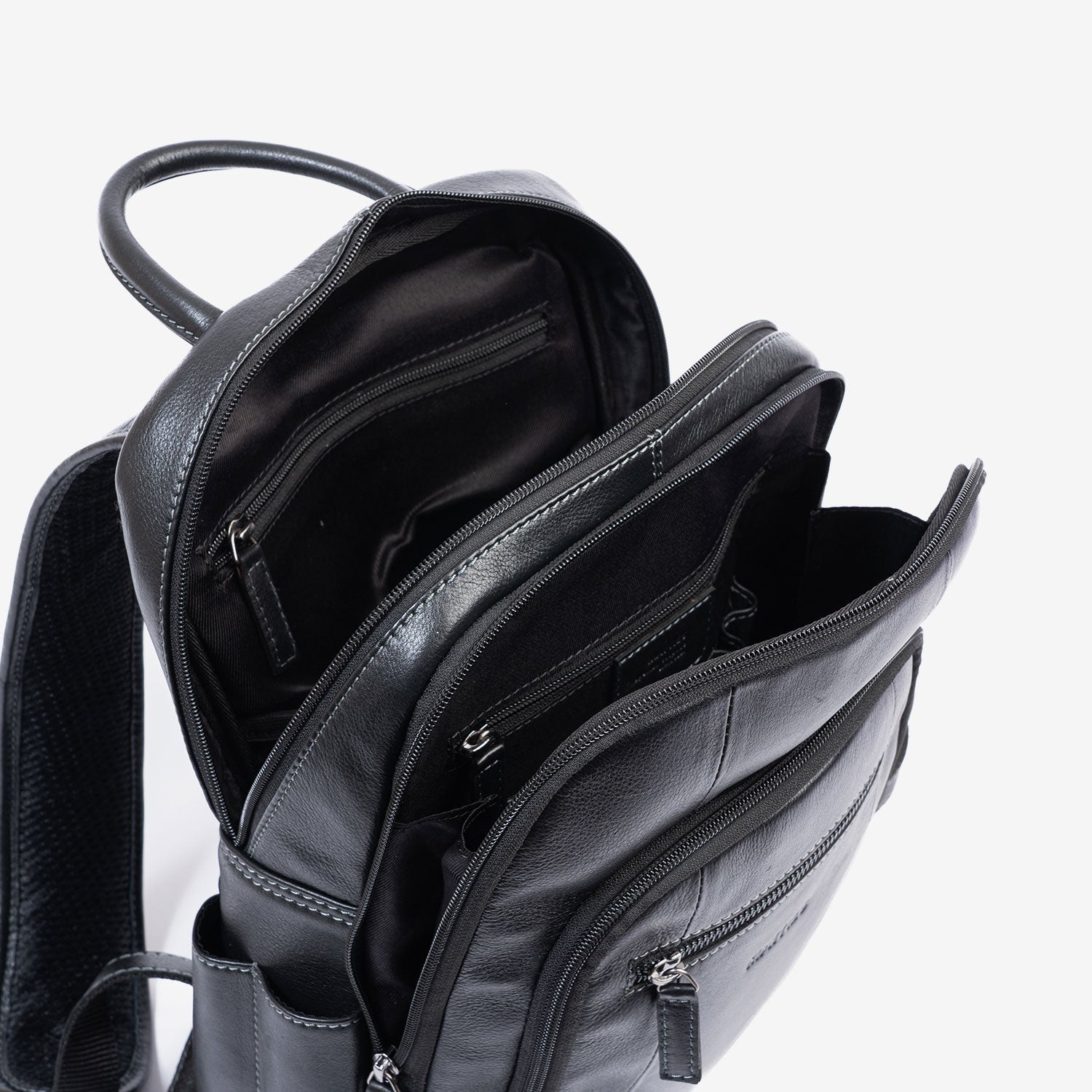 Mochila para hombre , color negro, Serie Pioneer Leather. 27x36x09 cm